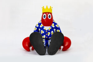 ロブ・プルイットはコカインのブッフェなど、破天荒なパーフォーマンスで物議を醸し出すアメリカ人のコンセプチュアル・アーティストとして名を成しました。彼の代表作として現在でも常に人気の高い作品に絶滅危惧種種であるパンダをモチーフにしたシリーズ作品がありますが、本展では金色に輝くパンダが描かれた「カントリーガール」を紹介します。